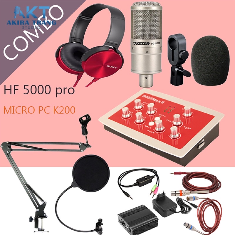 Combo thu âm livestream Míc PC K200-Sound card HF5000 MAX BẢN 2020 kèm đây đủ phụ kiện