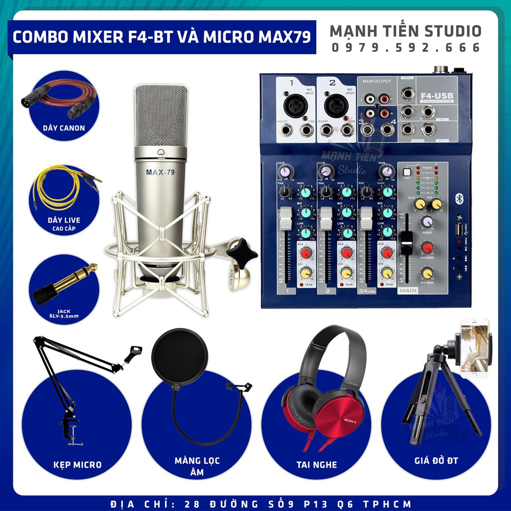 Thiết Bị Âm Thanh > Amply và đầu chỉnh âm || Combo thu âm livestream karaoke bán hàg onl tiktok idol bigo cctalk MIXER F4 Bluetooth Và Micro Max79 tặng full phụ kiệnCòn hàng