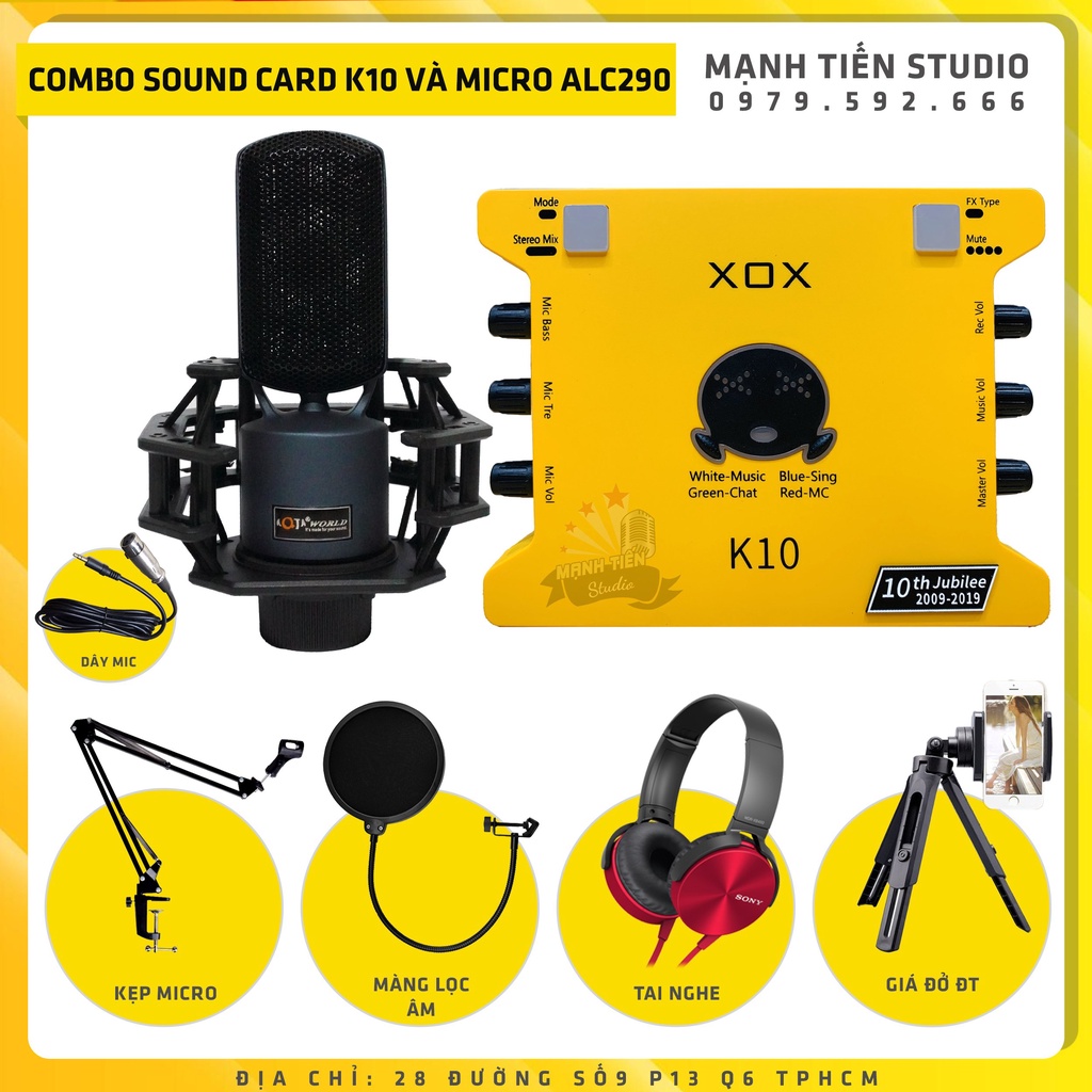 Thiết Bị Âm Thanh > Micro thu âm || Combo thu âm livestream karaoke soundcard K10 + Micro ALC290 tặng full phụ kiện kẹp micro màng lọc tai nghe giá đỡ đtCòn hàng