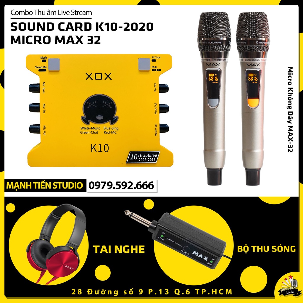 Combo thu âm livestream karaoke siêu hay soundcard K10 + Micro đa năng max 32 tặng tai nghe bảo hành 12 tháng