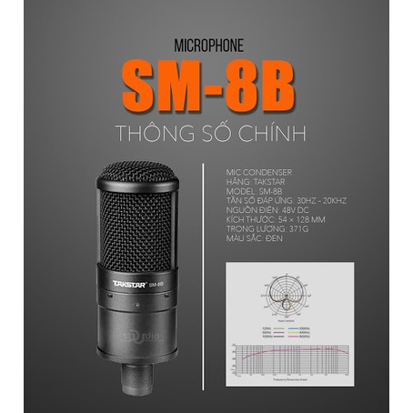 Micro thu âm Takstar SM-8B có thể khuếch đại nhưng không làm ảnh hưởng tới chất lượng âm thanh, do đó được dùng cho những dòng nhạc khó như R&B. Bạn có thể sử dụng trong điều kiện có tiếng ồn, chiếc mic thu âm, mic livestream này có thể lọc ồn và tạp âm tần số thấp một cách triệt để