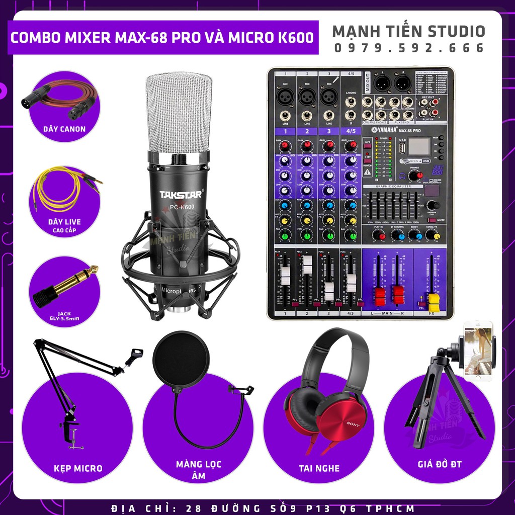 Combo thu âm livestream karaoke đỉnh cao MIXER MAX68 Bluetooth Và Micro K600 siêu cấp chuẩn âm như phòng thu chất lượn