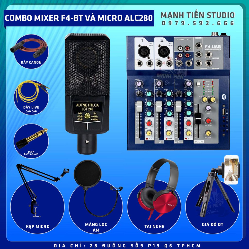 Thiết Bị Âm Thanh > Amply và đầu chỉnh âm || Combo thu âm livestream karaoke bán hàng onl tiktok idol bigo cctalk MIXER F4 Bluetooth Và Micro U87 tặng full phụ kiệnCòn hàng