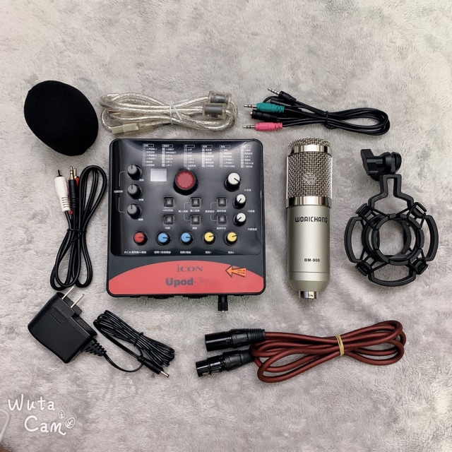 Combo bộ livestream Mic Bm 900 woaichang và sound card icon upod pro