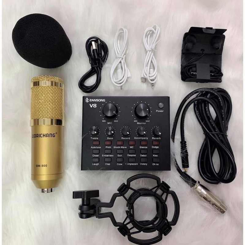 Thiết Bị Âm Thanh > Micro thu âm || Combo thu âm livestream Suondcard V8 và mic bm 900 woaichang tặng kèm tai nghe xịnCòn hàng