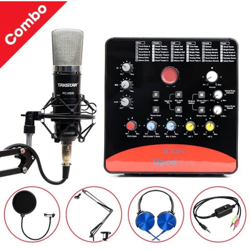 Trọn bộ Combo Micro thu âm Takstar PC-K600 + Sound Card ICON Upod Pro là một bộ micro thu âm chất lượng vượt trội hỗ trợ tốt việc hát karaoke, hát live chuyên nghiệp ngay tại nhà mà không cần phải đến phòng thu. Bộ sản phẩm Micro thu âm cao cấp đang được rất nhiều khách hàng tin tưởng và sử dụng, bởi vì không chỉ sở hữu chất lượng âm thanh cực tốt mà giá cực rẻ khi mua cả bộ combo quý khách sẽ tiết kiệm rất nhiều chi phí. Bên cạnh đó, các phụ kiện đi kèm kết nối đơn giản tương thích với nhau phục vụ tốt quá trình hát karaoke, livestream trên mang xã hội của bạn được thuận tiện nhất.Ưu điểm nổi bật khi chọn mua gói combo:– Kinh nghiệm mua micro thu âm của những khách hàng trước là đầu tư một gói combo micro thu âm vừa đỡ tốn thời gian vừa tiết kiệm chi phí.