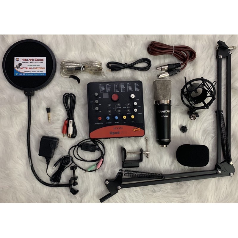 Giới thiệu Bộ combo thu âm livestream facebook,bigo Mic Takstar PC K600 và suondcard icon Upod Pro cao cấp