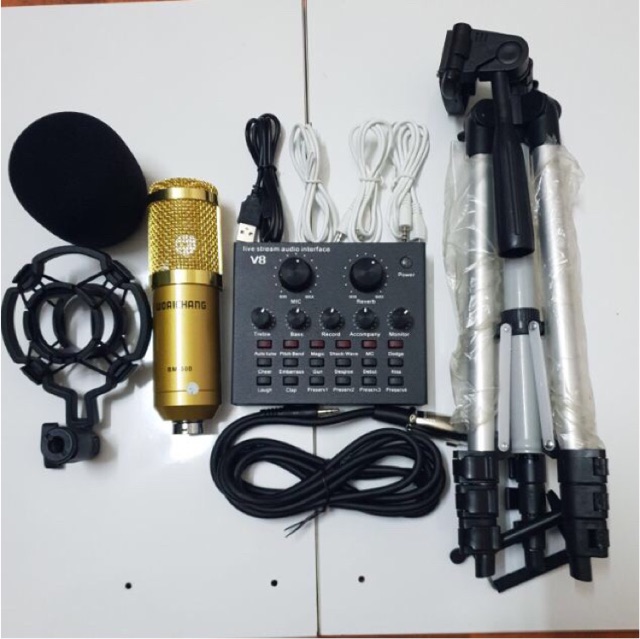Thiết Bị Âm Thanh > Micro thu âm || Combo thu âm livestreams mic BM-900 + sound card v8 quốc tế + tripod máy ảnhCòn hàng