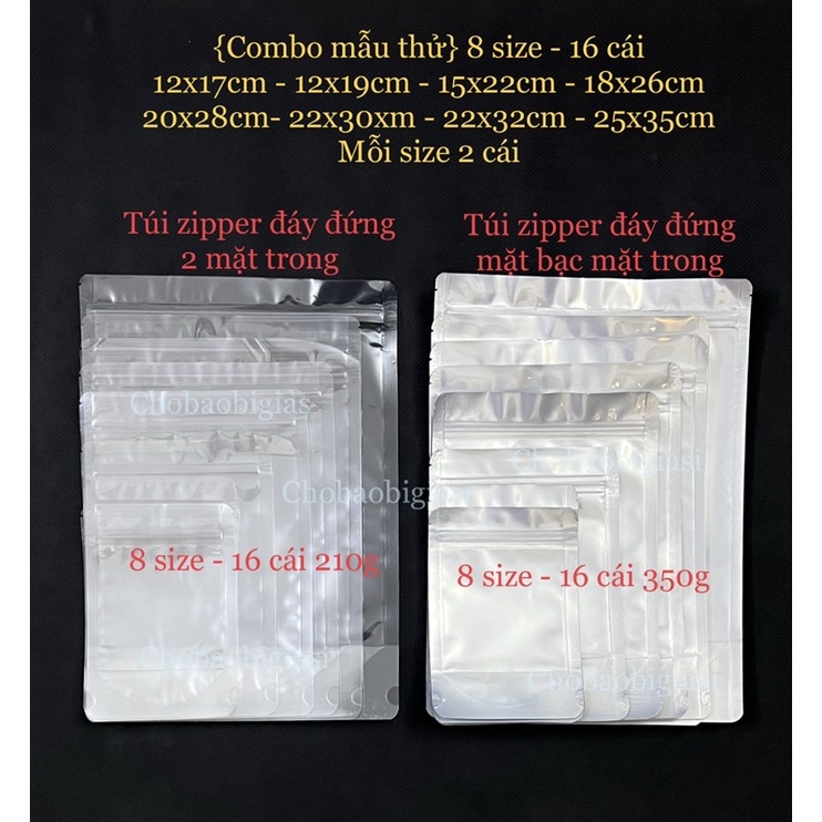 {Combo thử mẫu} 8 size - mỗi size 2cái túi zipper đáy đứng 2 mặt trong/mặt bạc mặt trong hàng đẹp