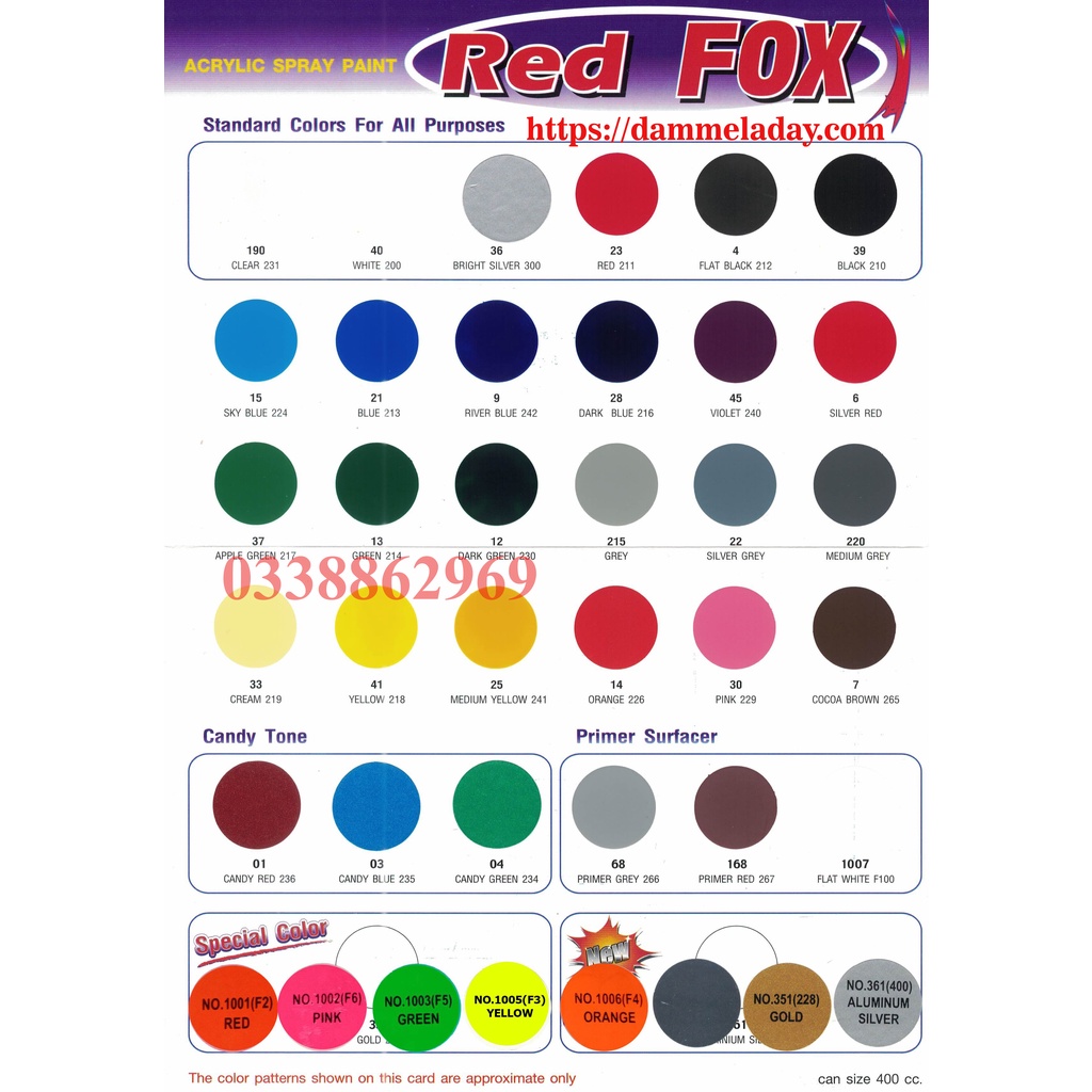 Sơn xịt Redfox– Nhập khẩu Thái Lan.bạn có thể tham khảo tại web: dammeladay.com