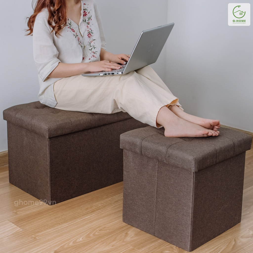 Nhà cửa & Đời sống > Nội thất > Ghế, ghế dài, ghế đẩu || Combo thùng vải đựng đồ kiêm ghế ngồi Ghome, ghế đôn khung gỗ nhân tạo bọc vải chắc chắn, tiện lợi TV04Còn hàng