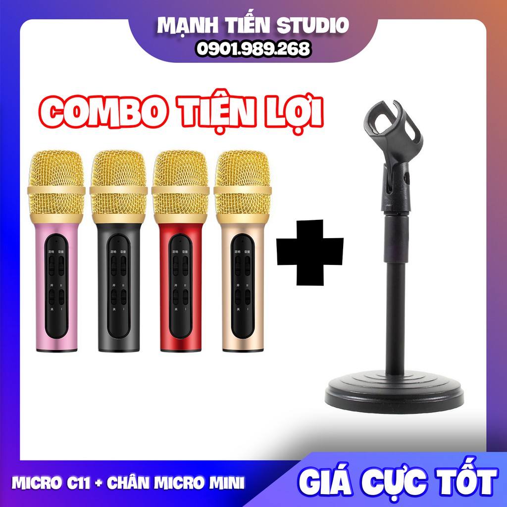 [Combo Tiện Lợi] Micro C11 thu âm, hát live bigo,cctalk,fb trực tiếp cực đỉnh - kèm chân micro mini đa dụng - tiện lợi