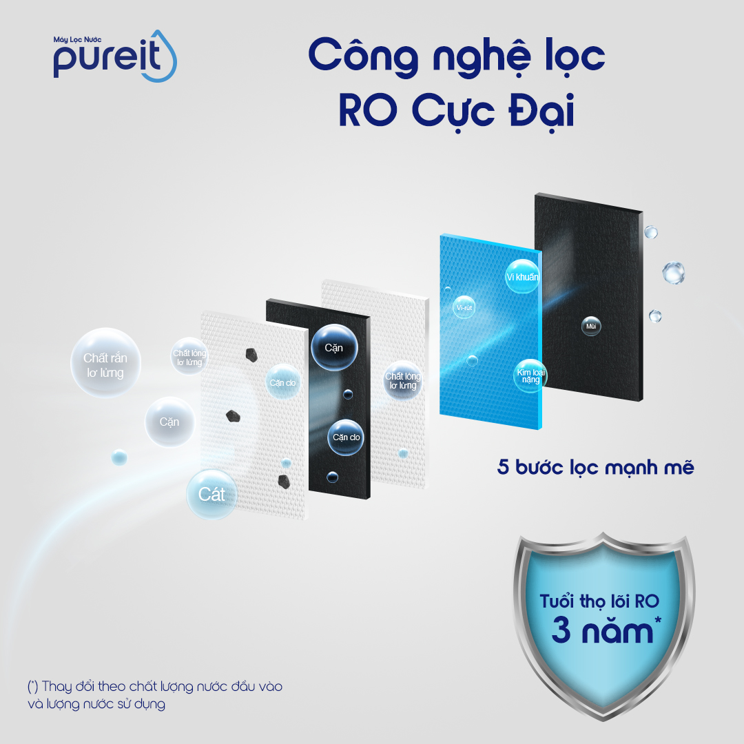(*) tùy thuộc vào chất lượng nguồn nước đầu vào và mức độ sử dụng.