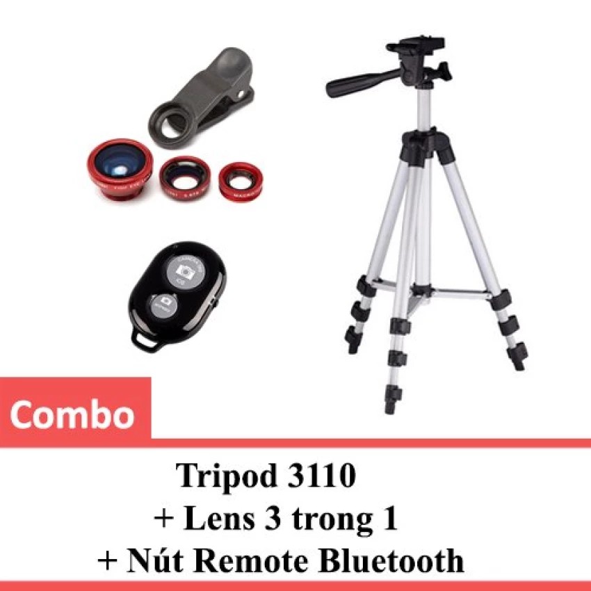 Combo Tripod 3110 + Lens 3 trong 1 + Nút Remote Bluetooth