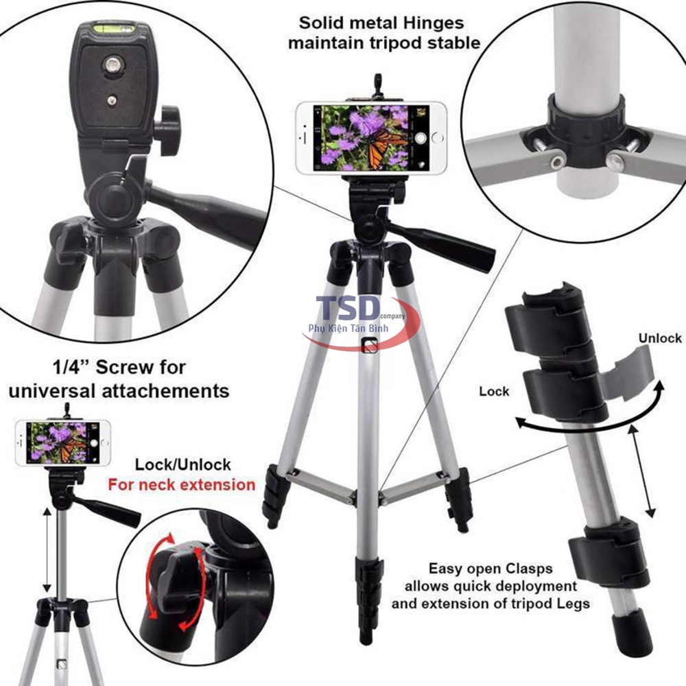 Combo Tripod Điện Thoại, Máy Ảnh TF 3110 Tặng Kẹp & RemoteGiới Thiệu Sản Phẩm: