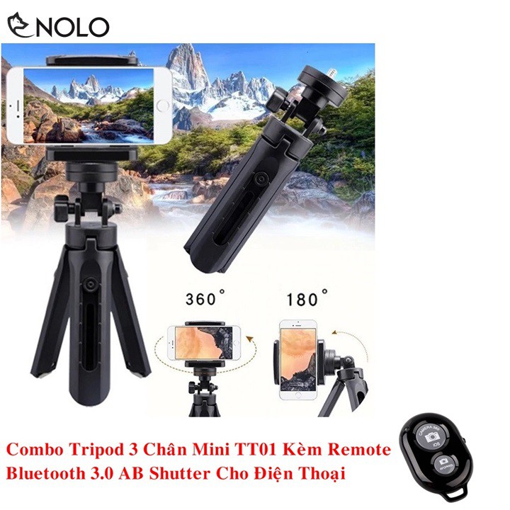 Combo Tripod Mini TT01 Kèm Remote Bluetooth 3.0 AB Shutter Cho Điện Thoại
