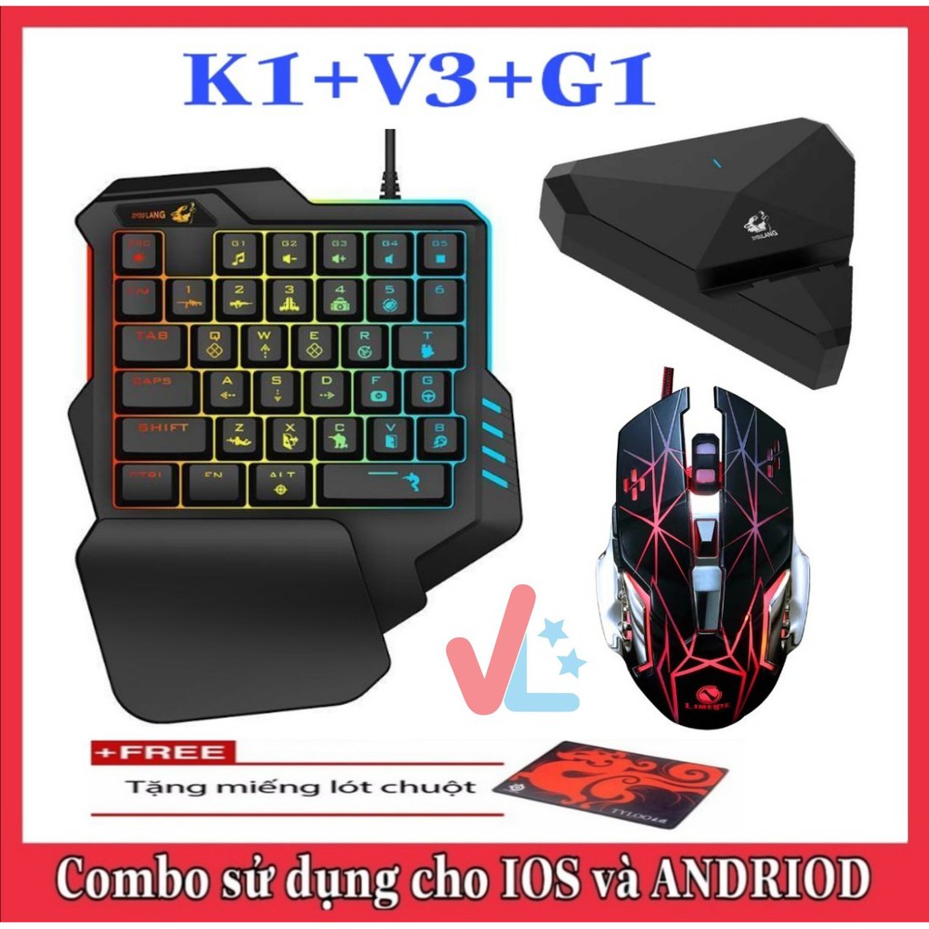 COMBO TRỌN BỘ 3 MÓN CHƠI GAME MOBI TRÊN ĐIỆN THOẠI (VLK1G1)(Bộ sản phẩm gồm Bàn Phím Game "K1" + Hộp Chuyển Đổi "G1" + Chuột Game "Nhiều Mẫu" để các bạn thoải mái lựa chọn) được phân thành 5 phân loại sau: