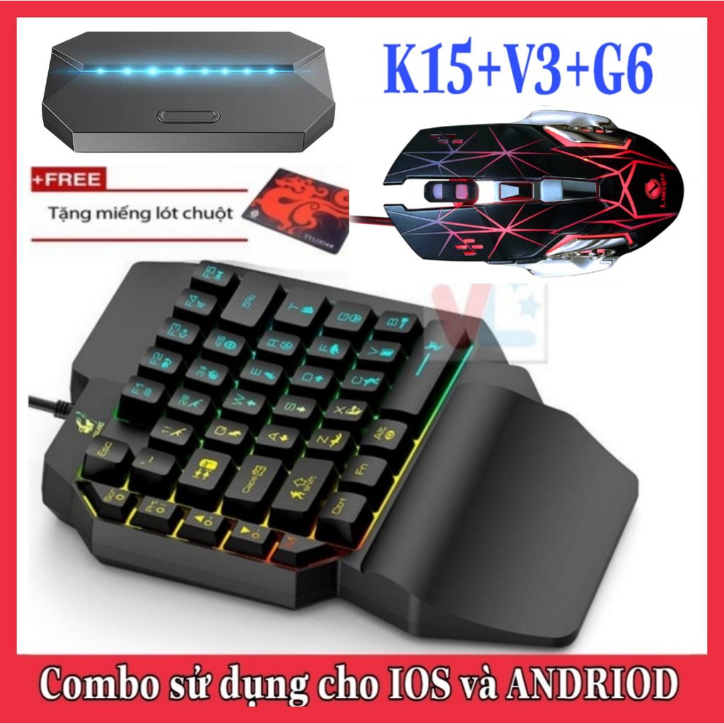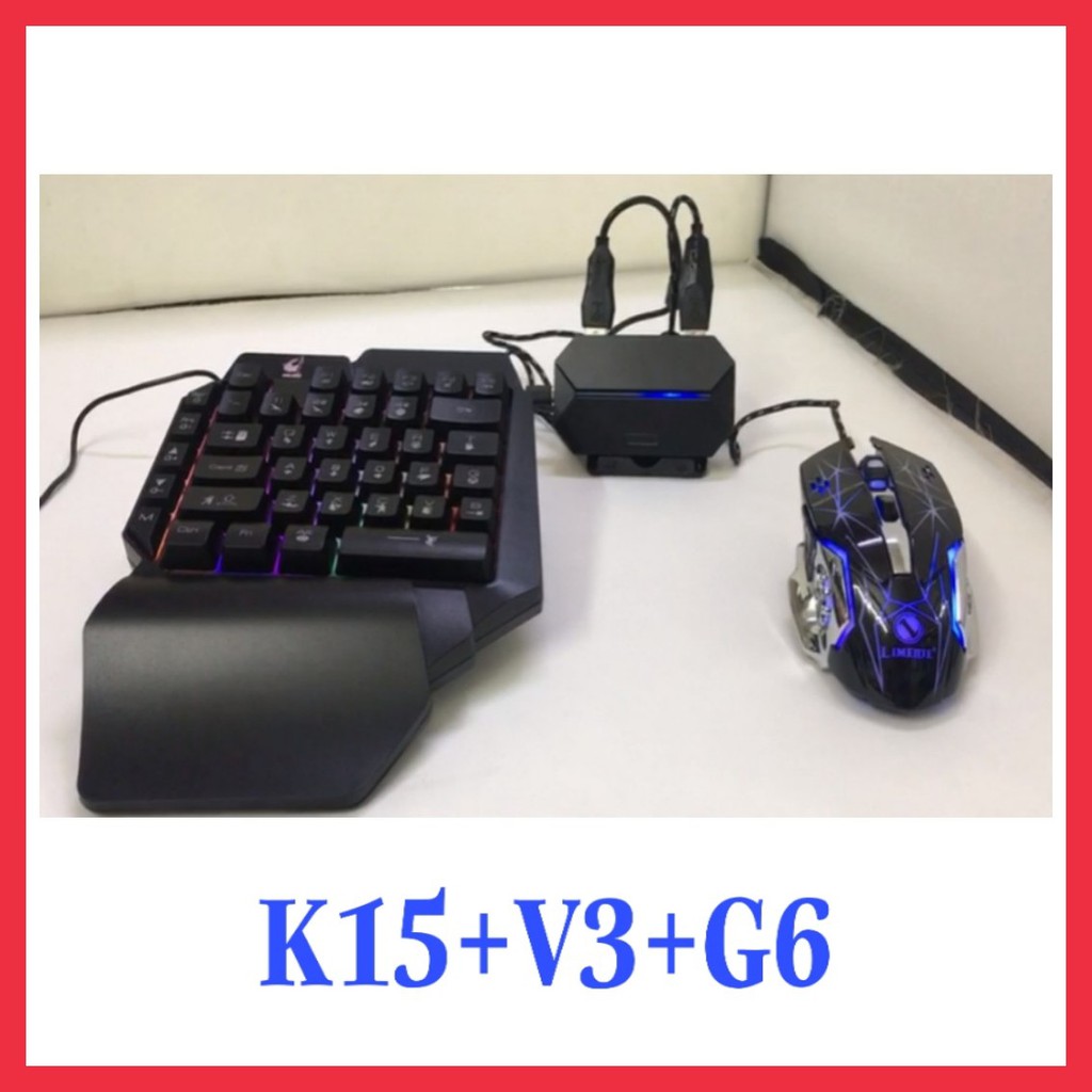 Combo Trọn Bộ Bàn Phím K15 + Chuột V3 + Hộp Chuyển Đổi G6 chơi game PUBG Mobile cho Android, IOS, iPad như PC - VL