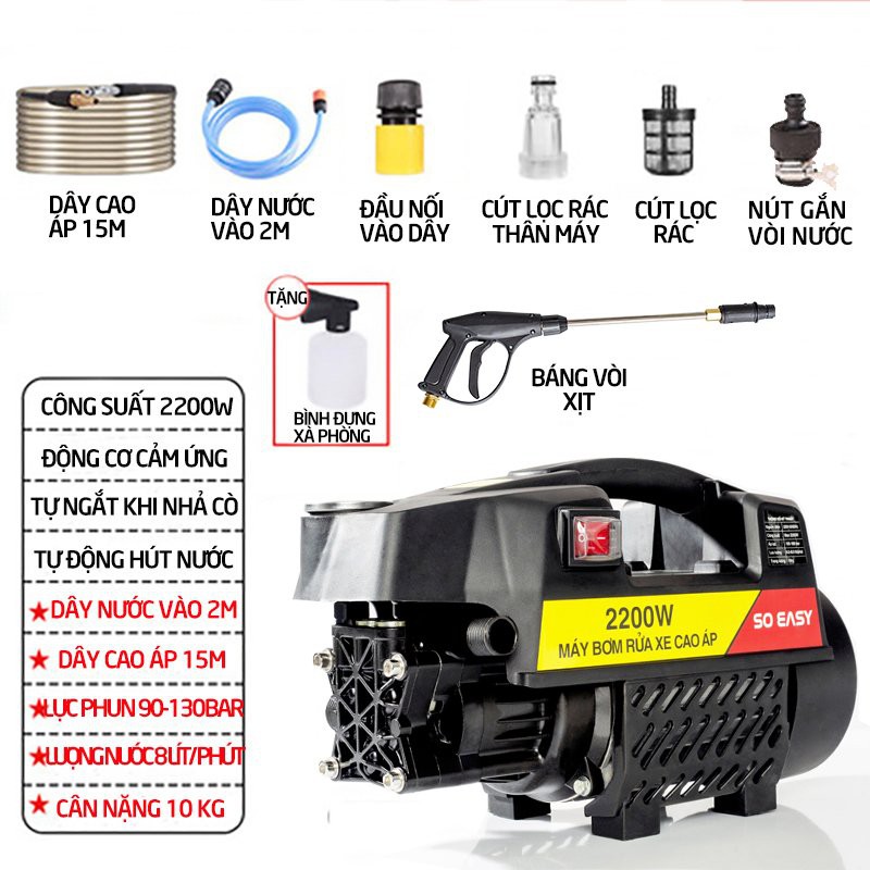 Combo trọn bộ rửa xe ,Máy rửa xe áp lực cao,Máy rửa xe gia đình, công suất mạnh 2200W+xà phòng và khăn lau xe-COMBO2
