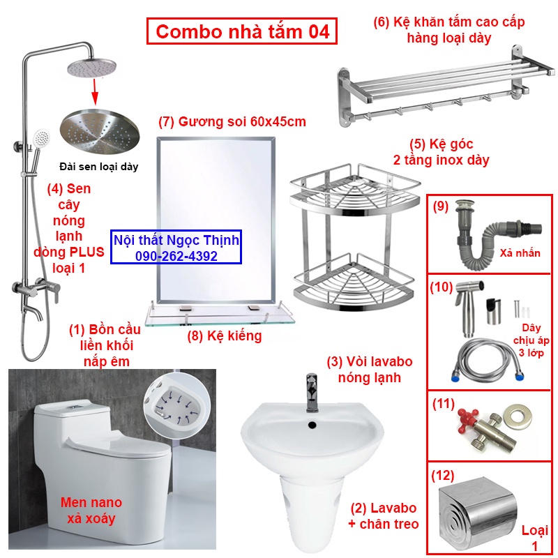 Giới thiệu Combo trọn bộ thiết bị nhà tắm cao cấp đầy đủ lắp sử dụng ngay - Bồn cầu men nano cao cấp, kèm sen vòi nóng lạnh