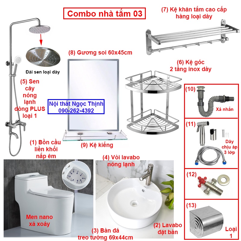 Combo trọn bộ thiết bị vệ sinh nhà tắm cao cấp - Hình ảnh sp đầy đủ các mónCombo 1: Gồm đầy đủ 12 món