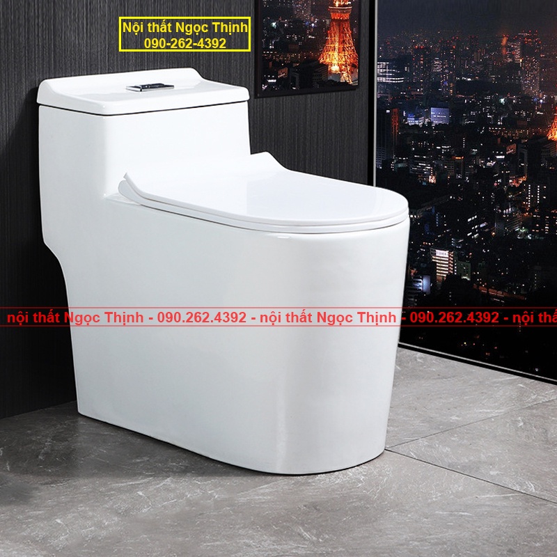 Bồn cầu thân liền khối, thiết kế nắp đóng êm ái, xả xoáy hút mạnh