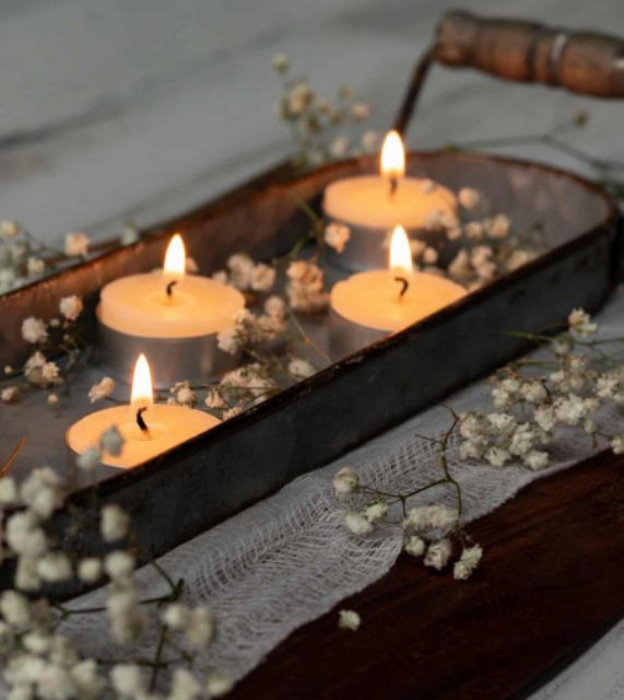 - Thắp trang trí trong ly, hũ, cốc, vỏ trái cây