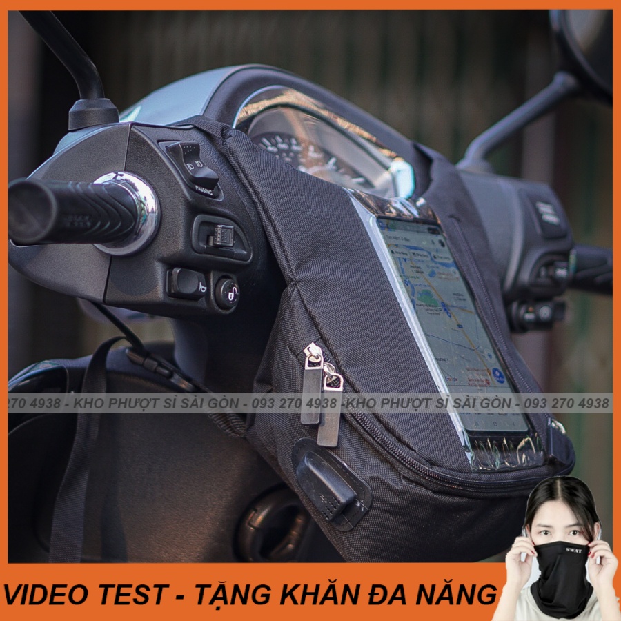 Mô tô, xe máy > Phụ kiện xe máy > Giá đỡ điện thoại || Combo túi treo đầu xe dọc chạy Grap Shipper kèm khăn ống đa năng chống bụi cao cấp - Túi Grab cảm ứngSo sánh giá ×