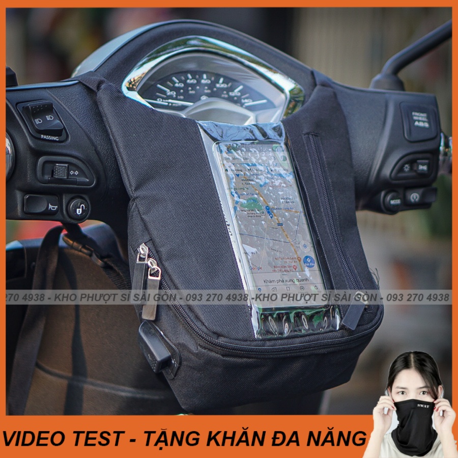 COMBO Túi treo đầu xe máy đựng điện thoại cảm ứng chạy Ship kèm khăn đa năng chống nắng swat