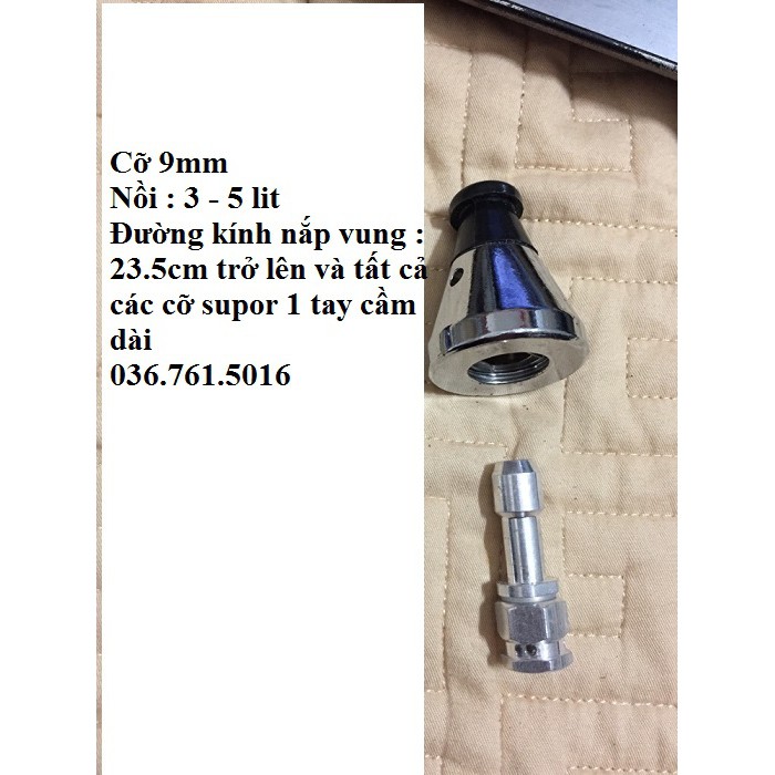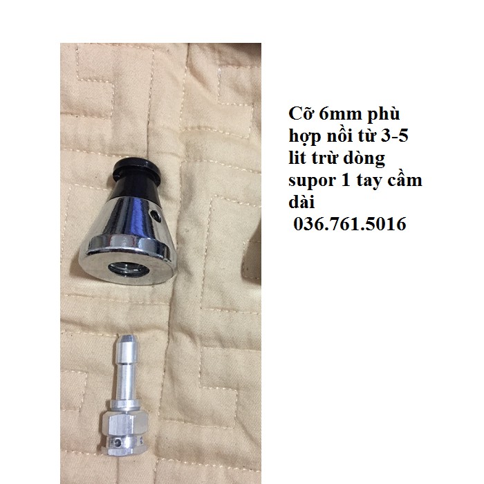 Van xả chính và chân van của nồi áp suất ga 1 tay cầm và nồi supor.Van và chân van sẽ có 2 loại: 1 loại 6mm và 1 loại 9mm.