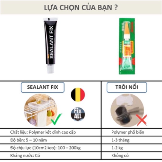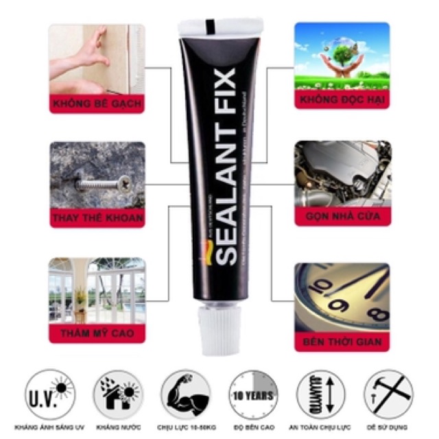 Ưu điểm tiện lợi, chịu dược nước. Thời gian để keo chết càng lâu thì càng chắc