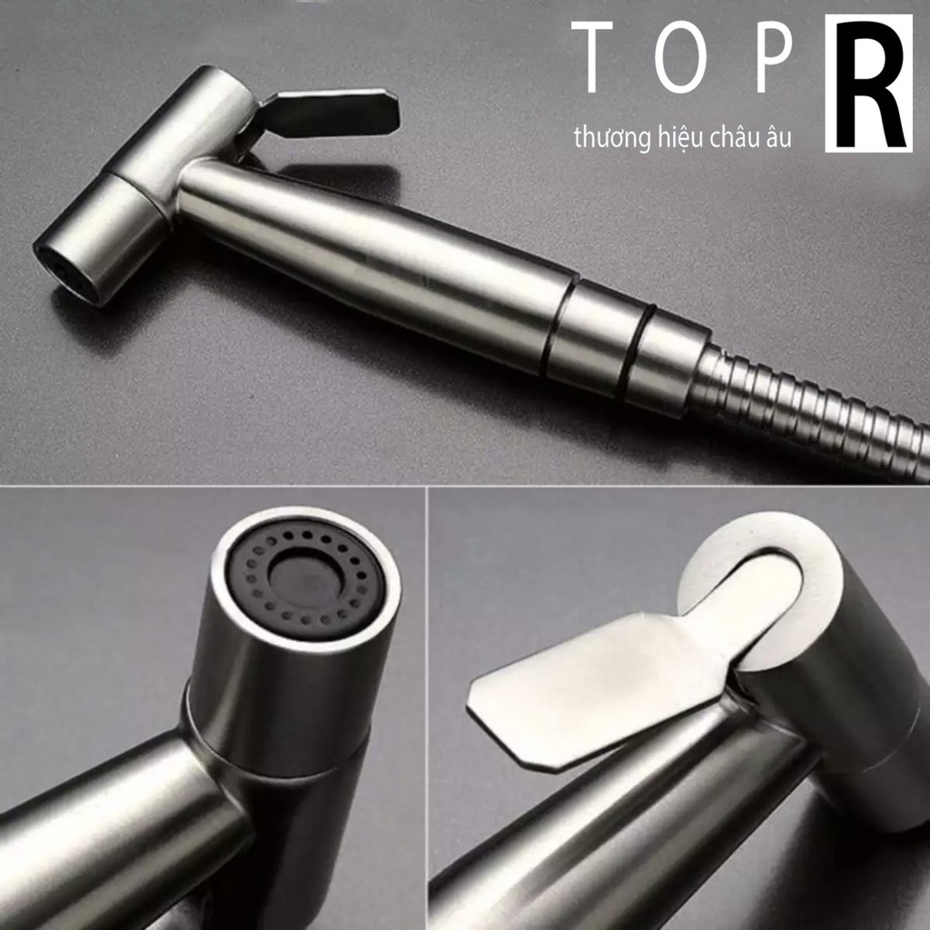 Combo Vòi xịt vệ sinh inox (vòi xịt bồn cầu inox) và đế cài TOP R