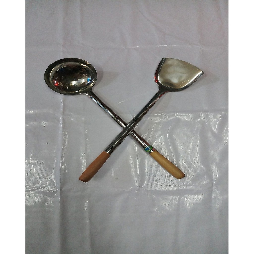 Nhà cửa & Đời sống > Dụng cụ nhà bếp > Cây vét bột & đồ gắp thức ăn || COMBO XẺNG LẬT+VÁ INOX CÁN GỖ CAO CẤP XẺNG 13,5+VÁ 14,5CM.Còn hàng