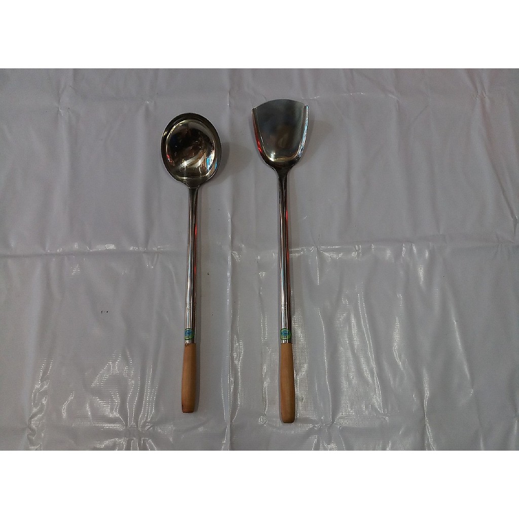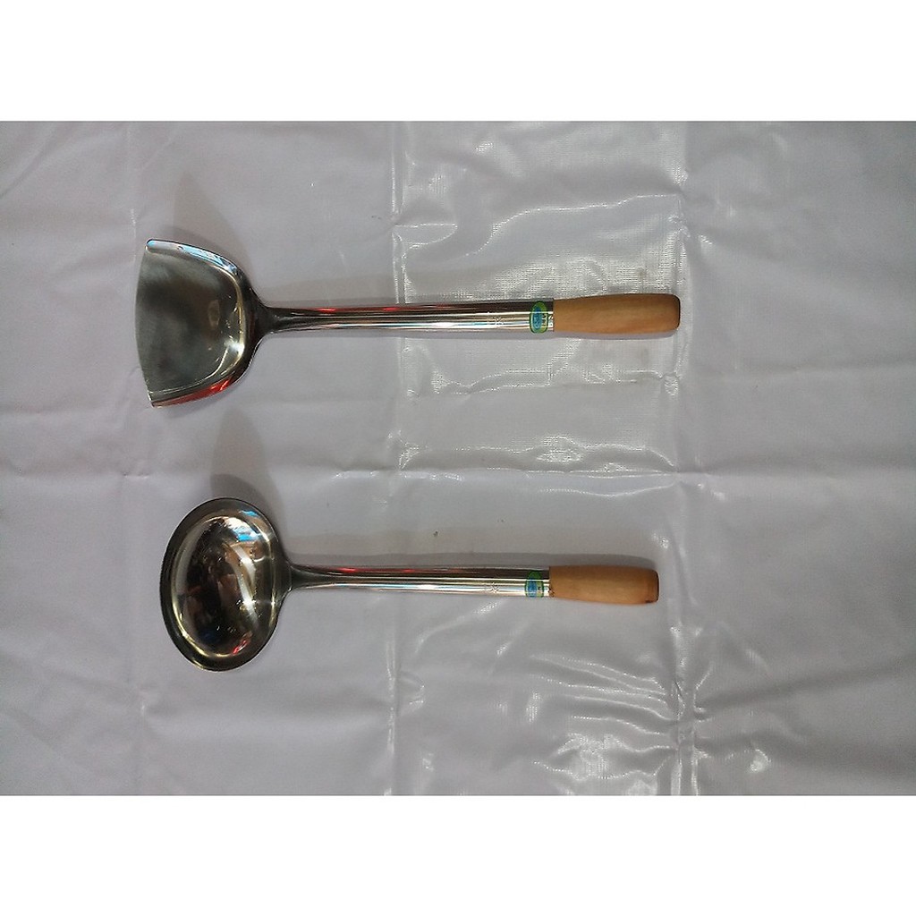 Nhà cửa & Đời sống > Dụng cụ nhà bếp > Cây vét bột & đồ gắp thức ăn || COMBO XẺNG LẬT+VÁ INOX CÁN GỖ CAO CẤP XẺNG 12,5+VÁ 13,5CMCòn hàng