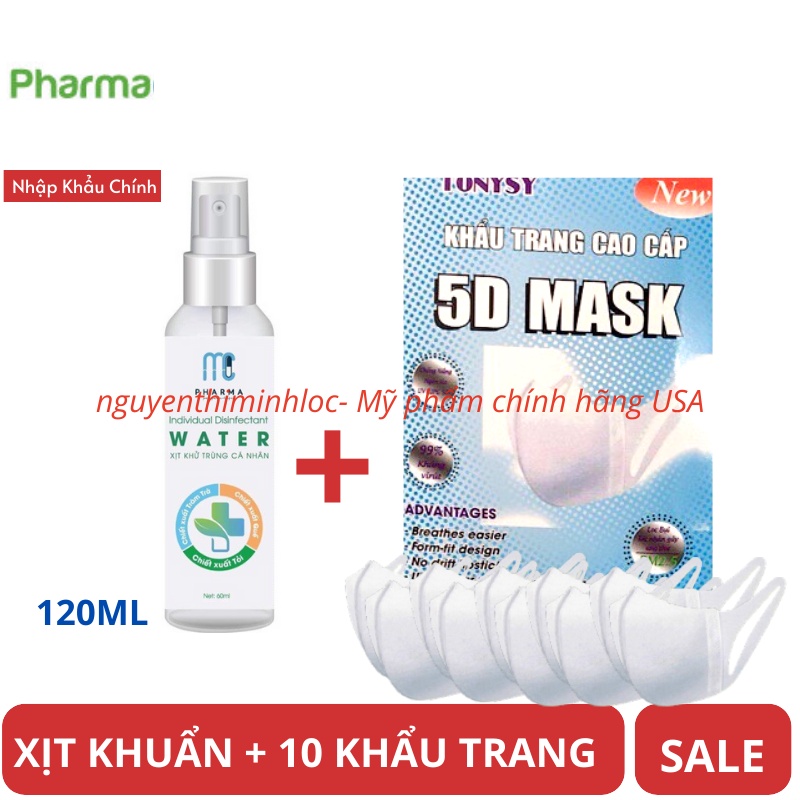 Combo Xịt + Khẩu Trang 5D kháng khuẩn khử trùng mc pharma 99% , nước diệt khuẩn khô toàn thân y tế phòng chống dịch bệnh