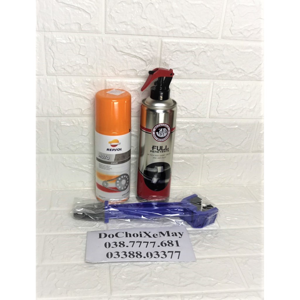 Ô tô > Dầu nhớt và phụ gia ô tô > Mỡ & Chất bôi trơn || Combo Xịt Sên Repsol 400ml , rửa sên Megacools Full Penetrate 500ml chính hãng tặng kèm bàn chải 3D. DoChoiXeMayCòn hàng