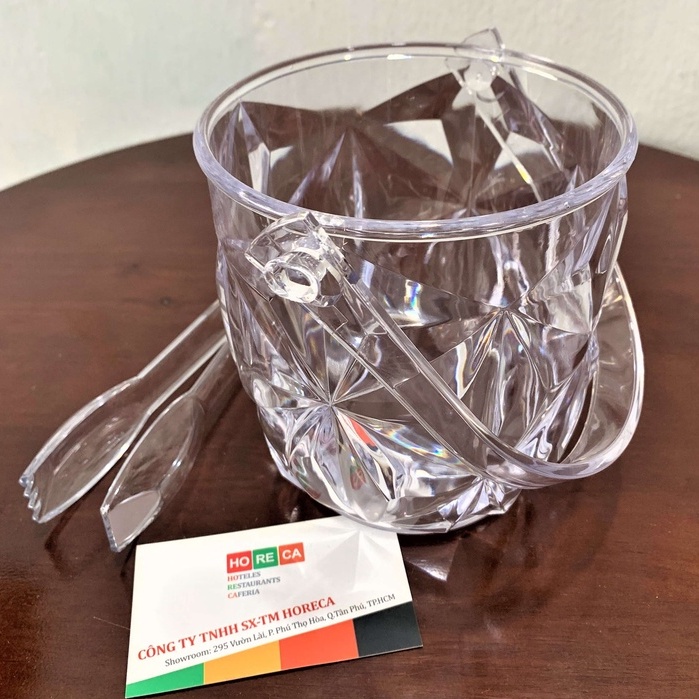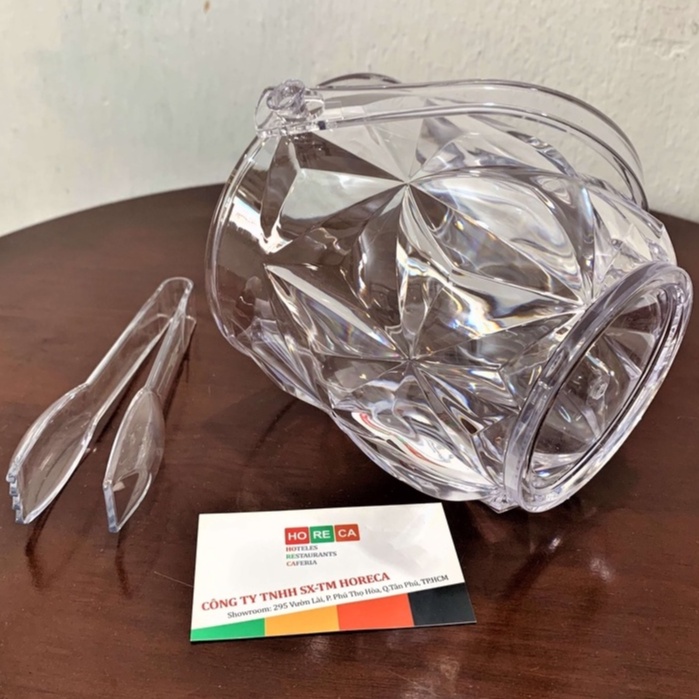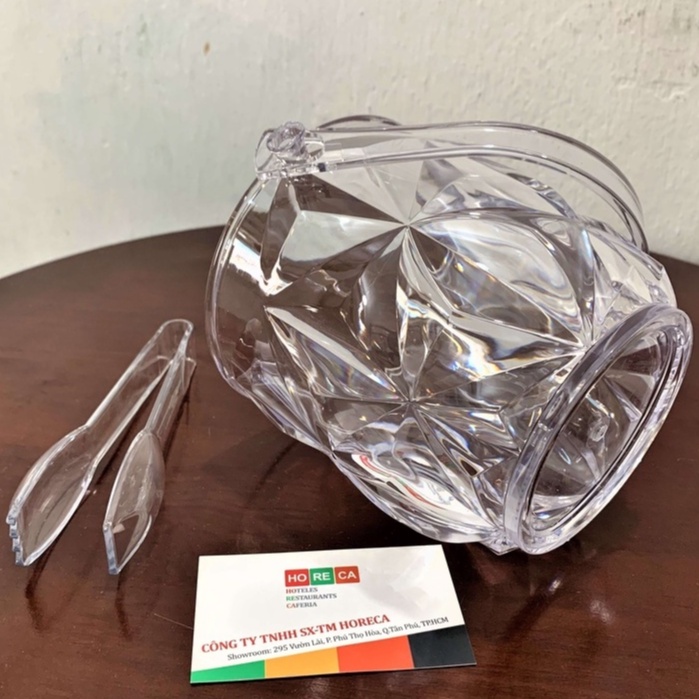 (Combo) Xô đá nhựa Pha lê 1,35 Lít và gắp đá mini, xô đá trong suốt, họa tiết kim cương