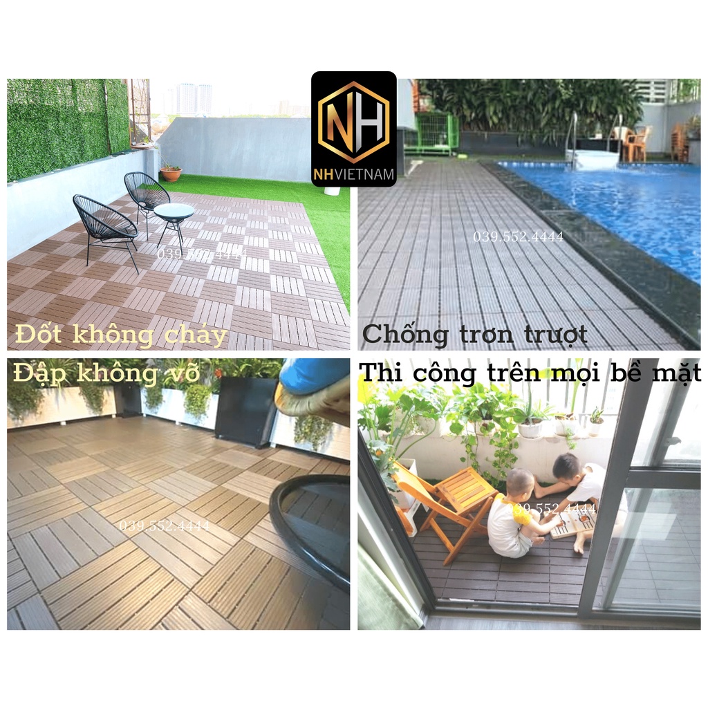 + Kích thước vỉ nhựa tiêu chuẩn 30cm x 30cm nhưng độ dầy được cải thiện còn 1cm phù hợp hầu hết với của ban công mà không lo chạm cửa khi đóng mở