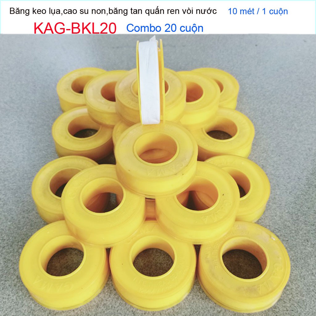 Giới thiệu Combo20 hộp băng keo lụa 10m, combo20 cuộn cao su non 10 meters quấn ống nước KAG-BKL20
