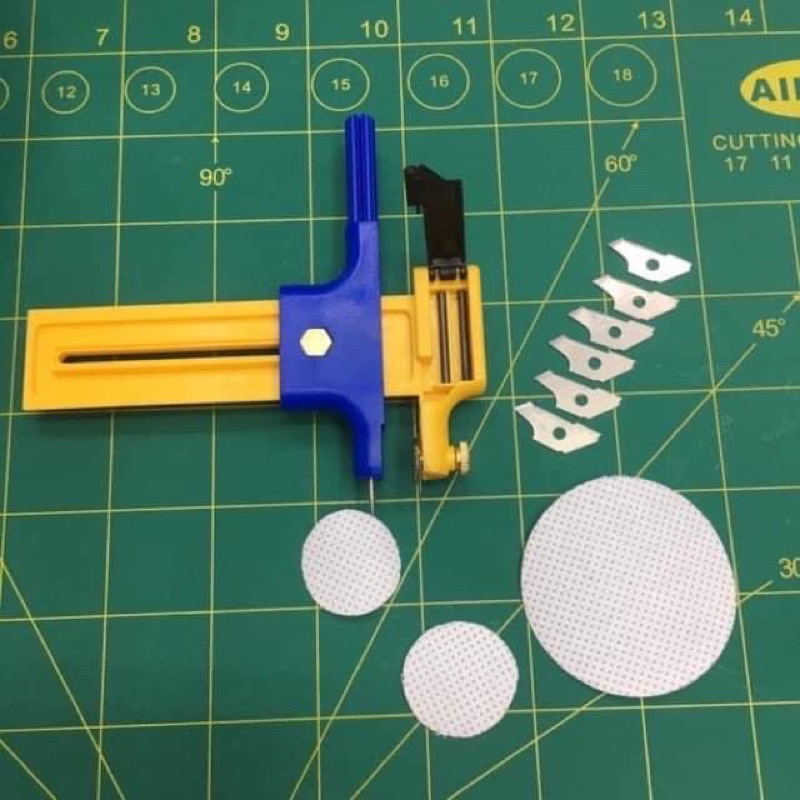 Giới thiệu Compa cắt tròn các liệu như vải nỉ, keo mếch,giấy, simili tặng kèm 6 dao