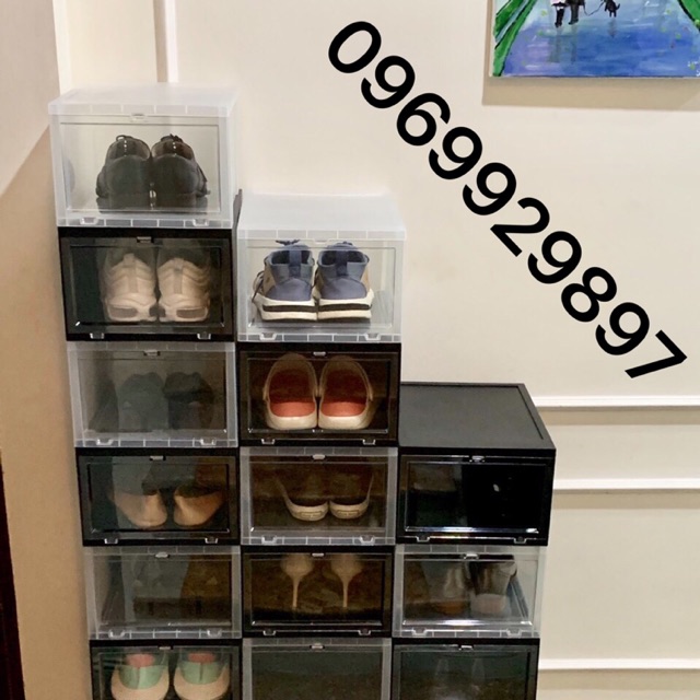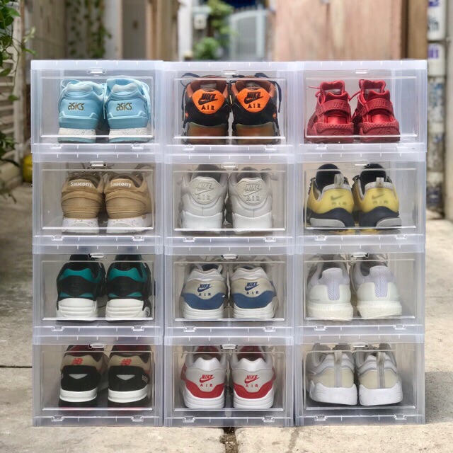 Có nắp mở bằng nhựa trong suốt, giúp bạn dễ dàng lựa chọn giày mỗi ngày