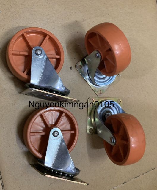 2 cái bxe 7 phân nâu : Bánh xe chất liệu nhựa . Có chiều cao phủ bì 8.5cm đường kính bánh xe 7cm . Bánh xe 1 vòng bi .Giá OPENX