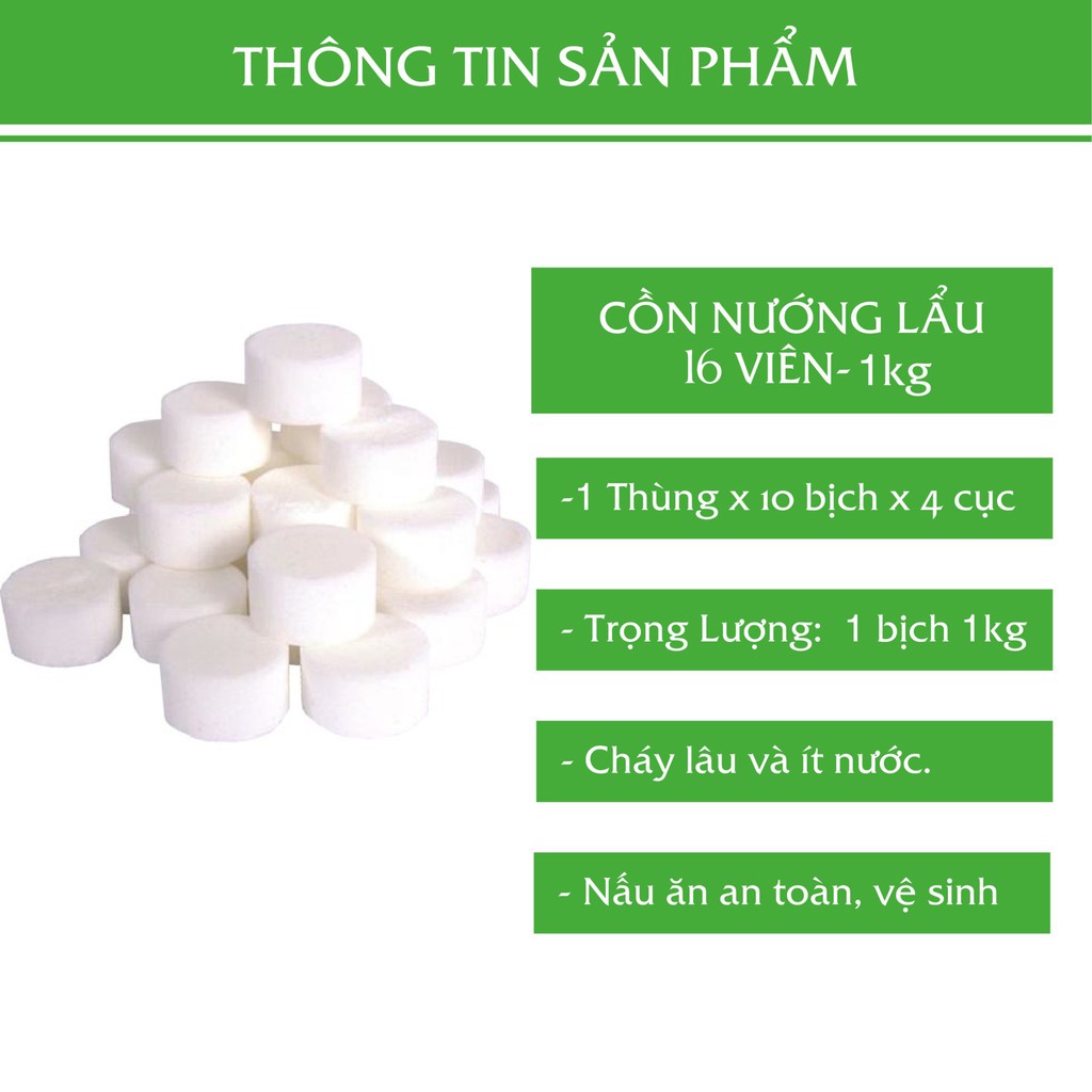 Giới thiệu Cồn Khô Nướng Lẩu, 16 Viên Cháy Lâu Túi 1KG