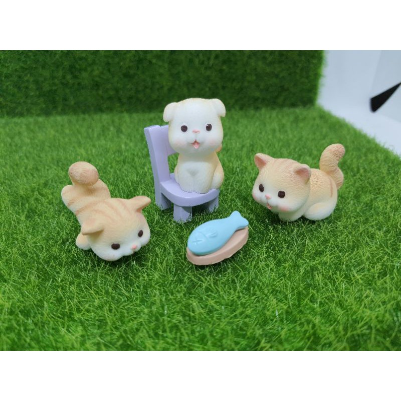 3. bộ mèo: 3 con mèo + 1 ghế + 1 cá + 1 đĩa (2 màu)