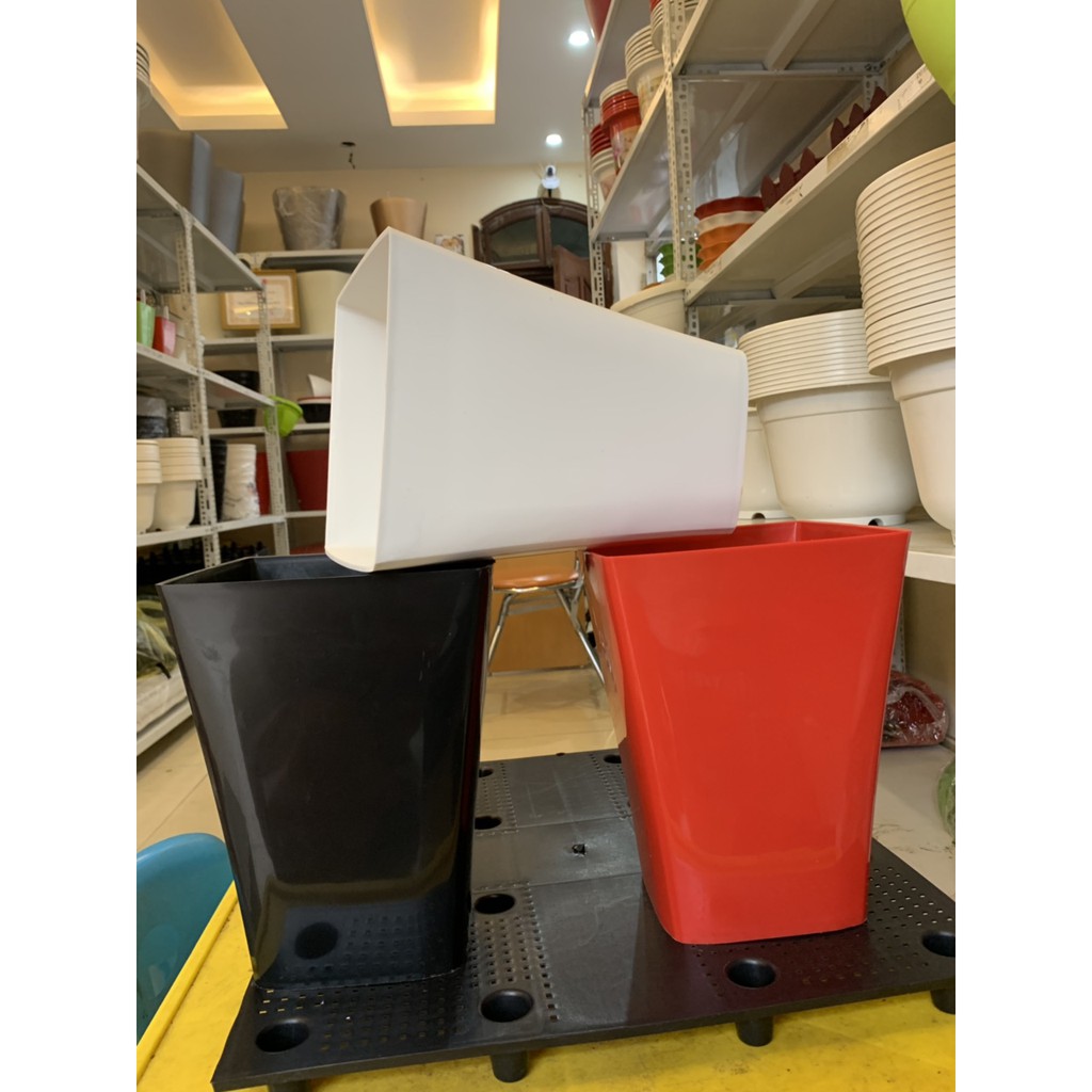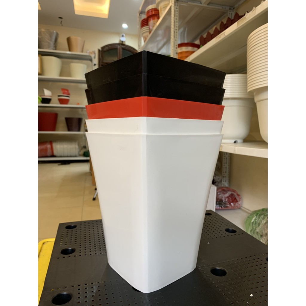 conbo HOT 5 chậu vuông miệng 20cm cao 25cm siêu đẹp , có 3 màu đen đỏ trắng(được chọn màu)