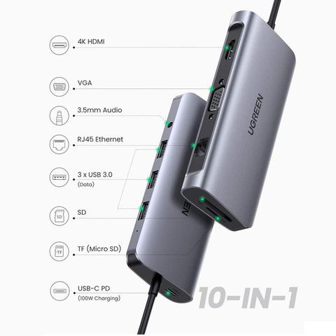 Giới thiệu Cổng chuyển chính hãng Usb Type C 10 in 1 All In One Ugreen 80133