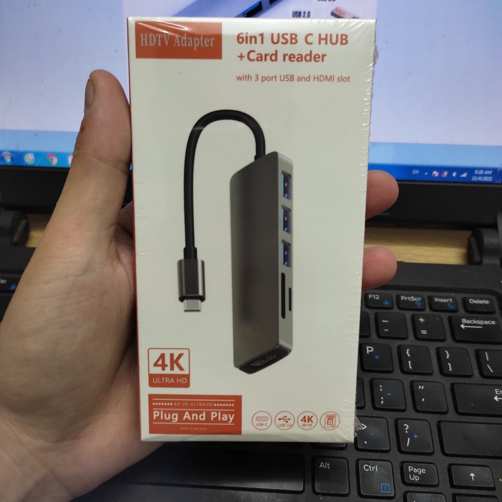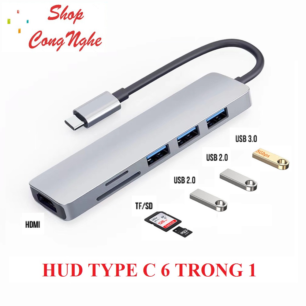 💥💥💥 Thông tin sản phẩm Hub Type C 6 TRONG 1✔ 1 cổng HDMI 4K UHD: Hỗ trợ xuất hình ra màn hình máy tính, TV với độ phân giải tối đa 4k/2k/1080p/720p