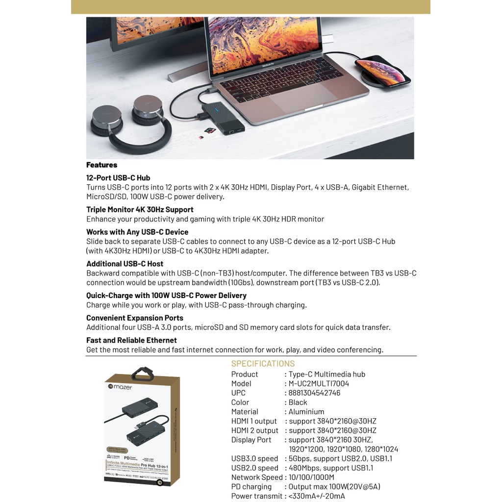 Cổng Chuyển Đổi Mazer 12-in-1 USB-C Multimedia Pro Hub - Hàng Chính Hãng