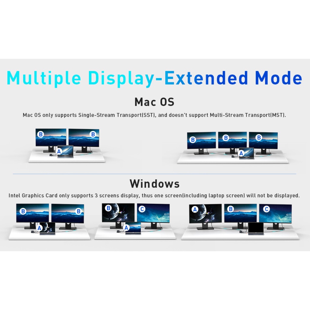 ✔️ 11 in 1: HDMI * 2 (4K@30Hz), USB3.0*3 (5Gbps), Type-C (PD100W), RJ-45 (1000Mbps), SD, TF (60MB/s), VGA, 3.5mm Audio Jack (Hỗ trợ màn hình mở rộng ba lần (MST) * Xin lưu ý: Đối với máy tính xách tay của Apple, nó không hỗ trợ màn hình ba lần)