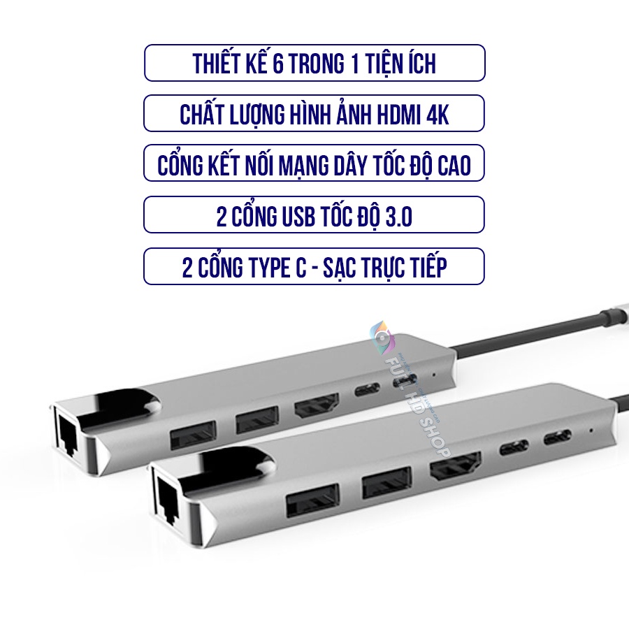 Cổng Chuyển Đổi Type C Sang USB/Mạng dây/HDMI/Type C Phụ Kiện Macbook Chia Cổng 6 trong 1 Full HD Shop Mã HD15Mô tả sản phẩm :